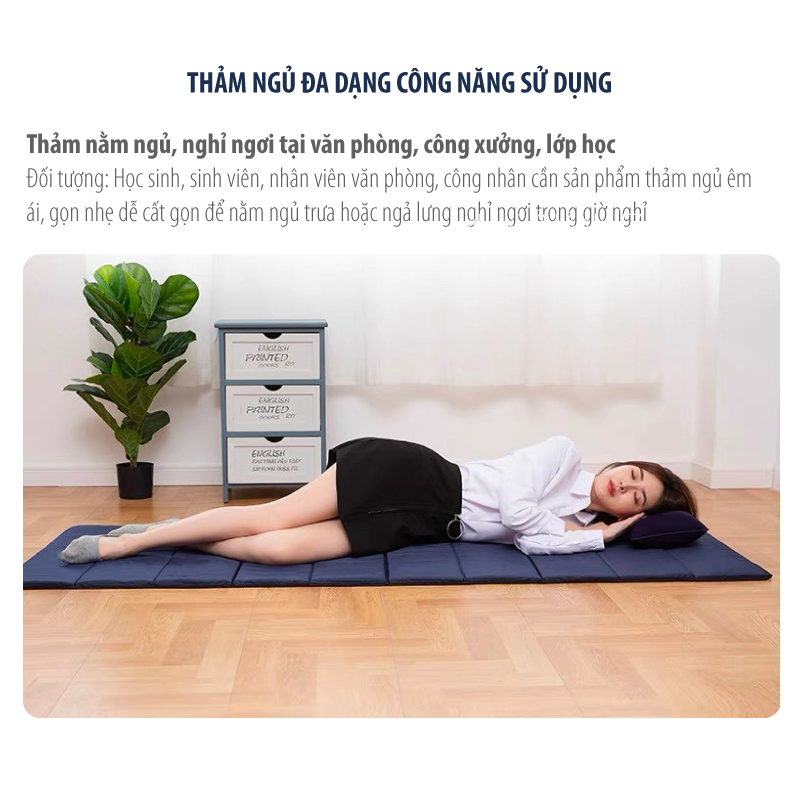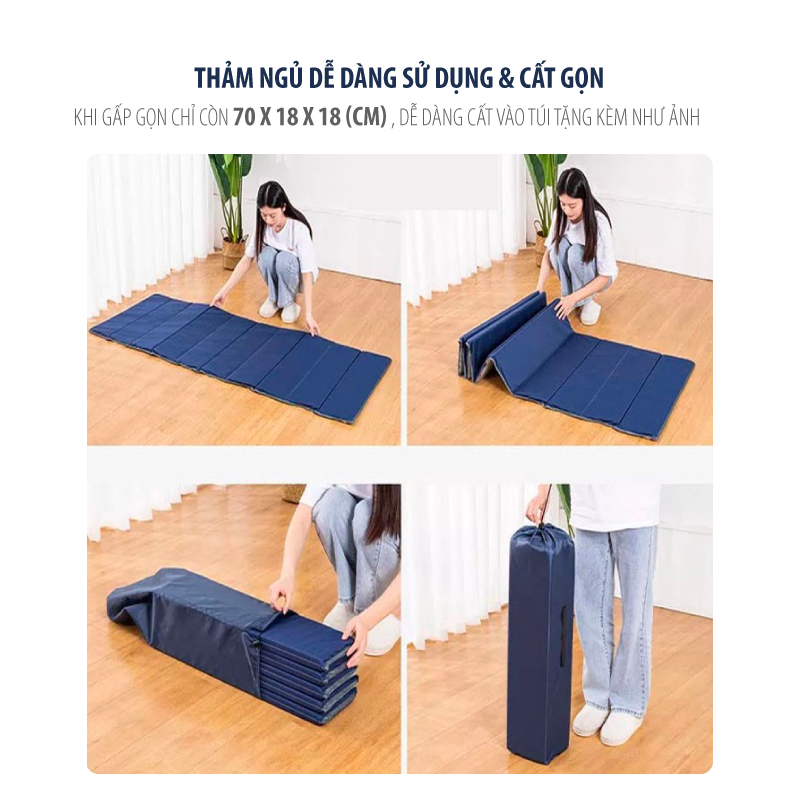 Thảm ngủ văn phòng gấp gọn, lớp mút dày 1,5cm êm ái, kích cỡ 70 x 190 (cm).